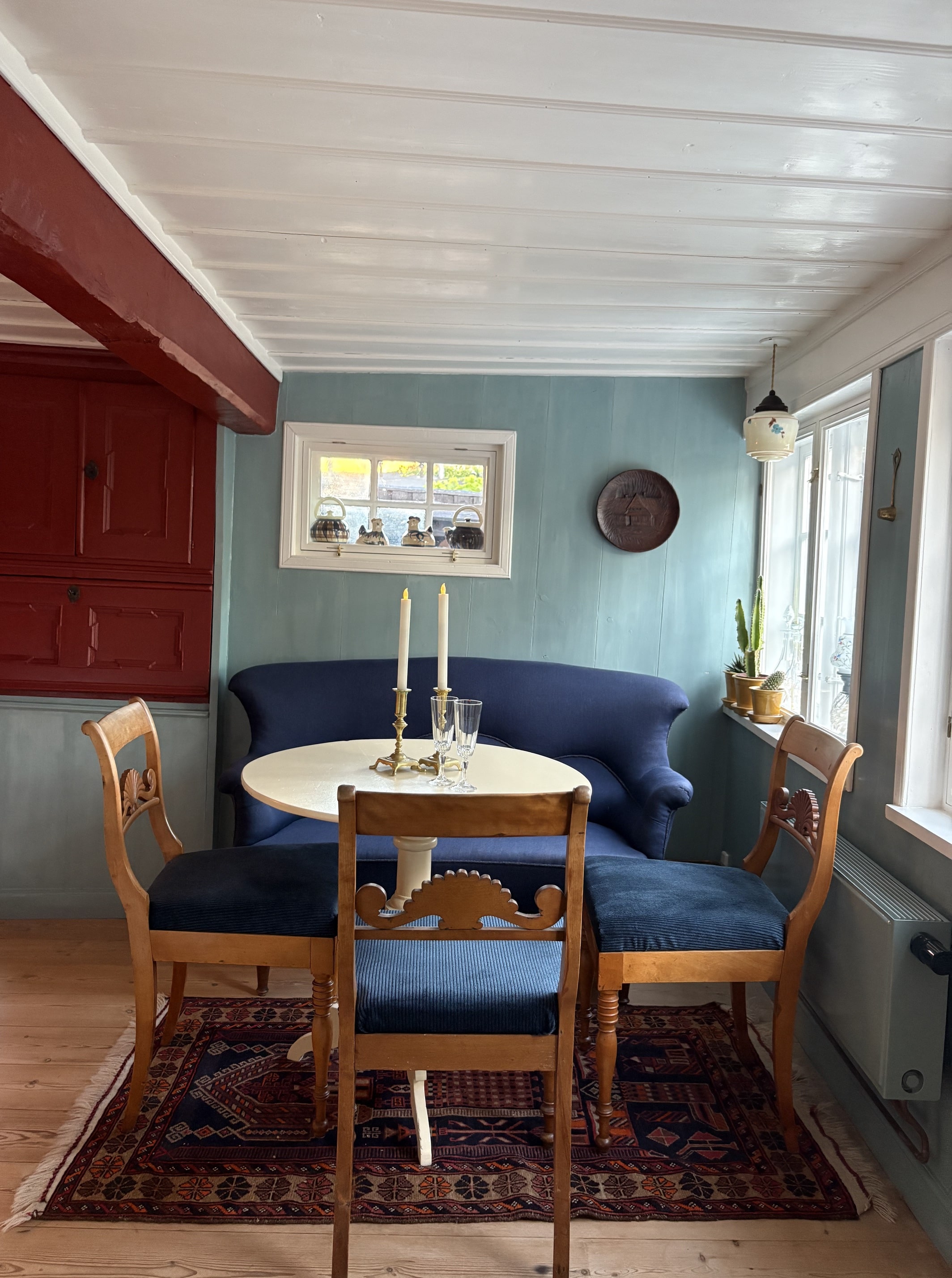 Huset er specielt at bevæge sig rundt i. Huset er lavloftet og med lave døre. Pas på med at slå hovedet.